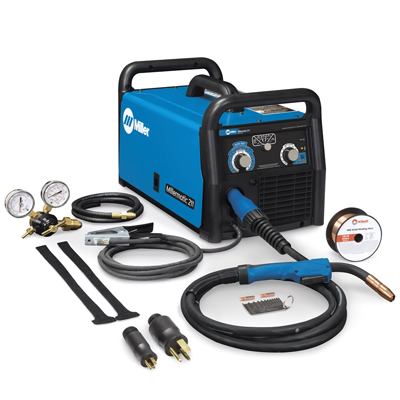 Advanced Auto-Set™Advanced Auto-Set™ now includes five different wire/gas combinations and .024, .030 and .035-inch wires. The easiest welder to use just became more versatile. Inverter TechnologyInverter technology combines best-in-class arc characteristics with the portability of a 38-pound machine. The arc is extremely forgiving to variations in arc length and travel speeds. Quick Select™ Drive RollQuick Select™ drive roll makes setup quicker by offering three grooves—two for different size solid wire and a third for flux-cored wire. Auto Spool Gun Detect™Auto Spool Gun Detect™ automatically detects when a MIG gun or spool gun is connected eliminating the need for a switch. Fan-On-Demand™Auto Spool Gun Detect™ automatically detects when a MIG gun or spool gun is connected eliminating the need for a switch. Multi-voltage plug (MVP™)Multi-voltage plug (MVP) allows connection to common 120 or 240 V power receptacles without the use of any tools— simply choose the plug that fits the receptacle and connect to the power cord. New Drive SystemAngled cast-aluminum drive system with calibrated tension knob creates consistent feeding and easy setup for up to 15-foot MIG guns. Smooth-Start™Smooth-Start™ provides a smooth, spatter-free start. It’s the best-starting machine in the small MIG machine category. Generator CompatibleThe Millermatic 211 will be able to operate and provide full output when powered by generators with 7000 Watt (7K) output or higher, such as a Miller Bobcat or Trailblazer series generator. Limited output will occur when used with smaller generators. |