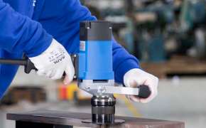 Straight forward & easy Handling low weight,Variable 3 milling cutters optionally 45,30 or R 2.5 mm,powerful 1.5 kW motor. Deburring and chamfering machines for quick and precise edge processing 20°, 45° or R 2.5 mm. Deburring and chamfering with machines from the EKF series. The BDS deburring and chamfering machine can be universally used for industry and craft: In mould making, boiler construction, plant construction, mechanical engineering and for sheet metal working. The EKF machine is ideally suited for deburring and chamfering of parts made of steel, stainless steel, non-ferrous metals, brass and plastic. Due to its handy, compact design, the machine can be used on straight edges, internal and external radii and for drill holes from ø 22 mm. The fine adjustment allows slight chamfers for deburring up to the preparation of welding seams. Three milling cutters with a chamfering angle of 45°, optionally 30° or a radius of 2.5 mm are available. The reversible disks can be used in 3 ways. Due to the small guiding roller, insertion into drill holes from ø 22 mm is possible without any problems. Edge processing with the EKF - the workpiece is securely fixed with the MagnetCLAMP magnetic clamping device ZMS 500.